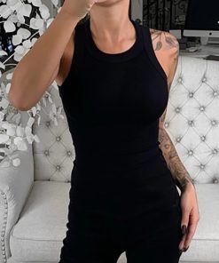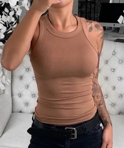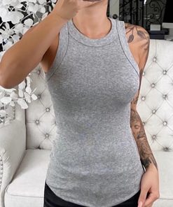 Women Solid Round Neck Ribbed Tank Top Camisole Women Summer Basic Elastic Tank Top O Neck Solid Tank Top